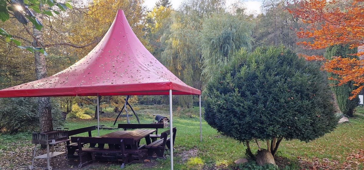 Die Alte Oberförsterei: inmitten von urwüchsiger pommerscher Landschaft lädt sie ein zum Abschalten und Entspannen. Waldluft, sauberes Wasser und unendliches Grün. 7750 Quadratmeter Privatland umgeben das Forsthaus und sorgen für Ruhe und Abgeschiedenheit. Der Forsthof steht, mit Ausnahme des privaten Wirtschaftteils, den Gästen zur Verfügung. Vor dem Forsthaus bieten ein Volleyballnetz, eine Schaukel und eine Wiese die Möglichkeiten sportlicher Aktivität. Im Forstgarten befinden sich die Feuerstelle, ein artesischer Brunnen und ein Teich. Ein kleiner Fluss am Ende des Gartens lädt zum Baden und zum Angeln ein. |